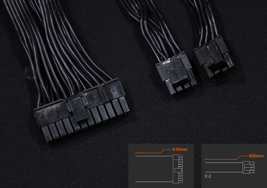 모듈러 케이블은 총 8개로 구성되어 있는데, 참고로 이번 울트라 듀러블로 출시한 파워서플라이는 850W용량을 비롯해 750W, 1000W 용량까지 3가지로 출시되었고, 750W와 850W 모델은 케이블 개수가 같고, 1000W 모델은 PCIE 케이블이 1개 더 많습니다. 케이블은 플랫(Flat) 타입으로 일반 케이블보다 정리하기에 좀 더 수월하며, 케이블규격은 인텔 파워서플라이 가이드 표준기준에 사용되는 18AWG를 사용했습니다. 또한, 케이블색상과 커넥터 색상 모두 올-블랙 색상으로 통일하고 있으며, 메인보드 24핀을 비롯한 커넥터 지원에는 보조전원 ATX 8(4+4)핀 2개, PCIE 8(6+2)핀 4개, S-ATA 8개, P-ATA 3개, FDD 1개로 구성되어 지원해주고 있습니다. 보조전원이 2개 들어가는 메인보드와 그래픽카드 2개 사용의 멀티 GPU 지원은 충분히 갖추고 있다 할 수 있죠. 케이블길이도 넉넉합니다.