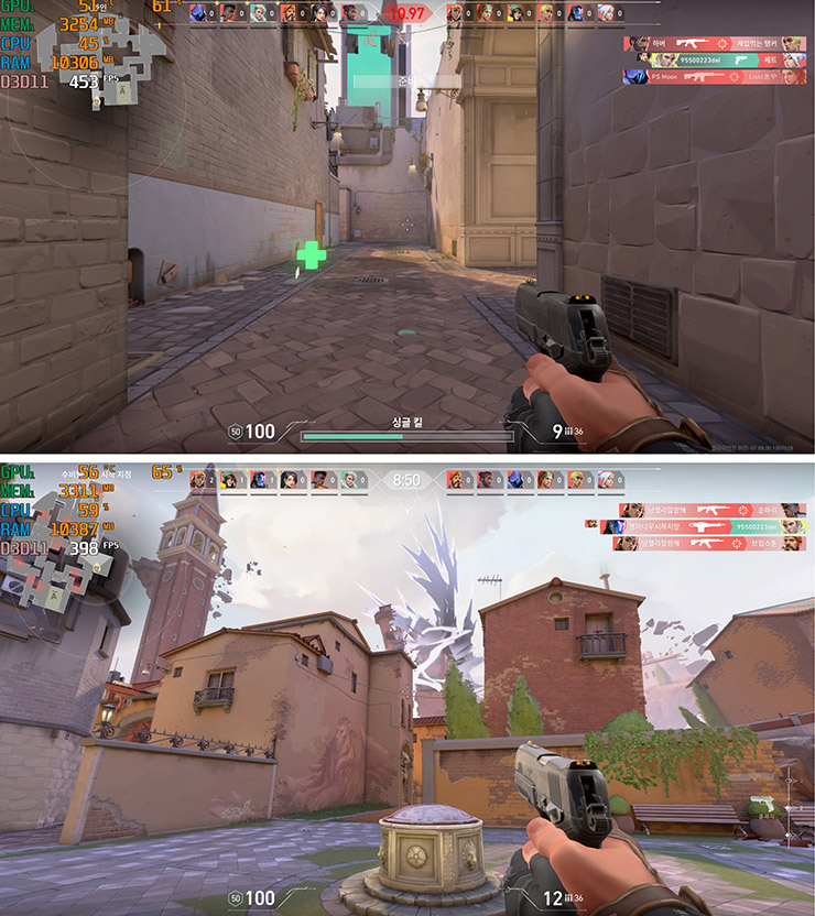 VALORANT는 좁은 실내에서는 500대까지도 올라갔으나 평균적으로는 대략 400 정도의 프레임이 나왔다.