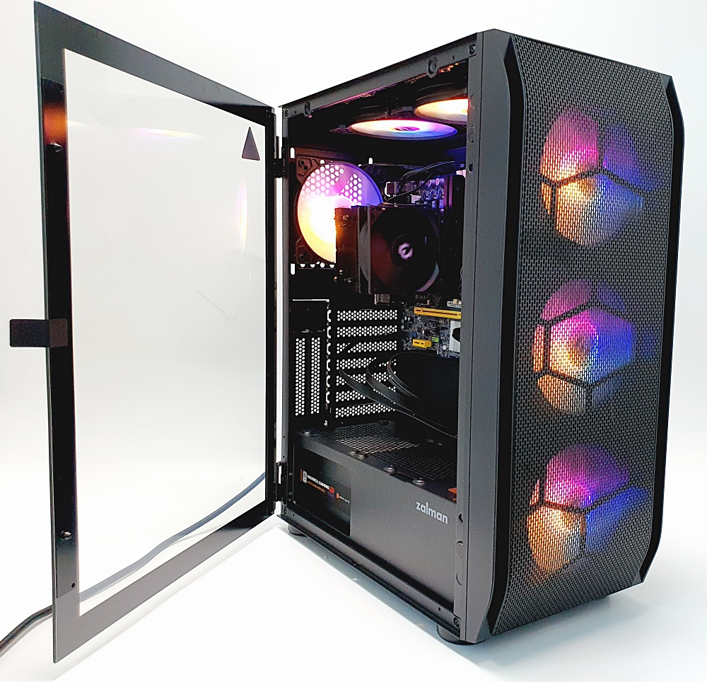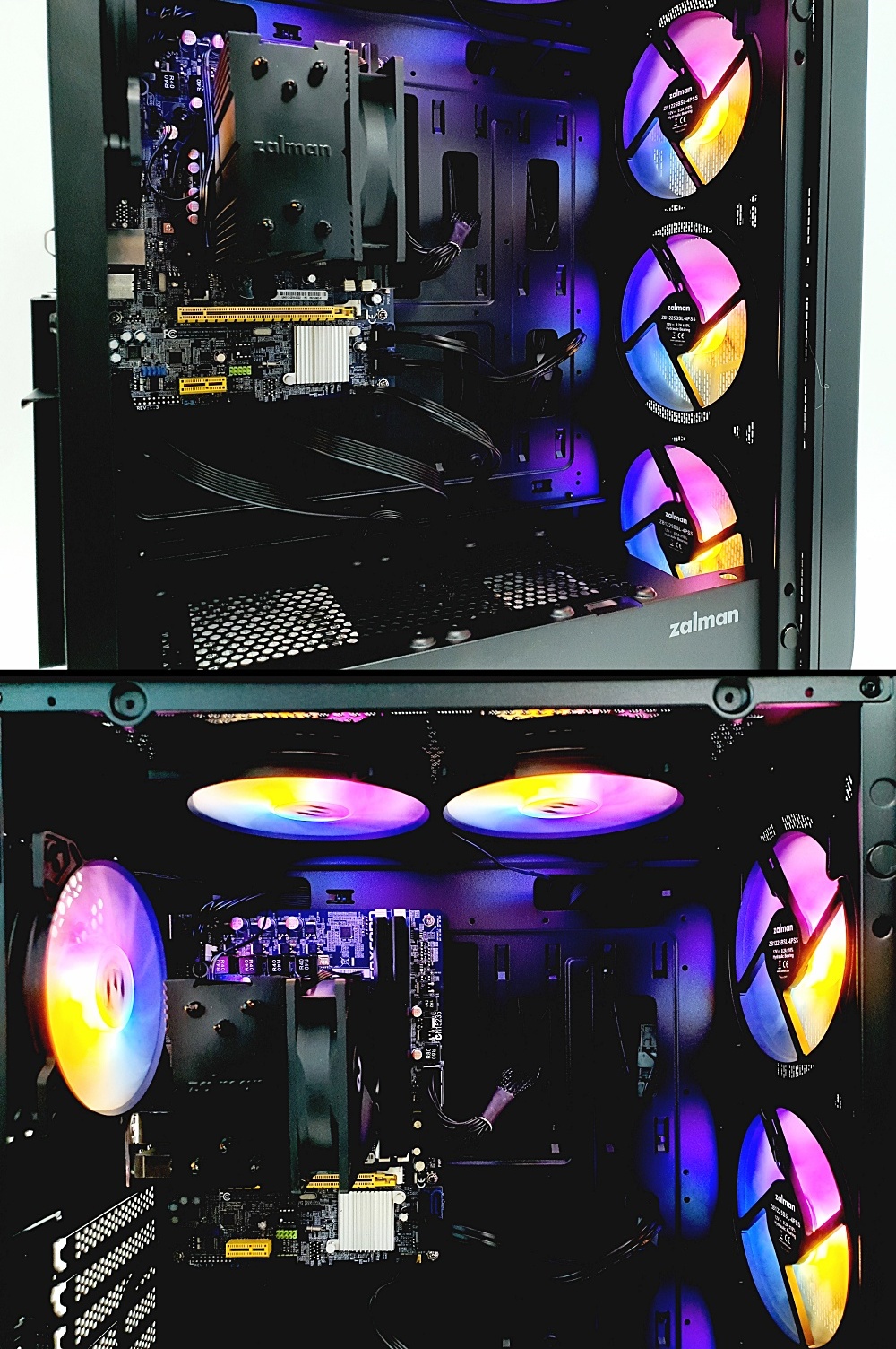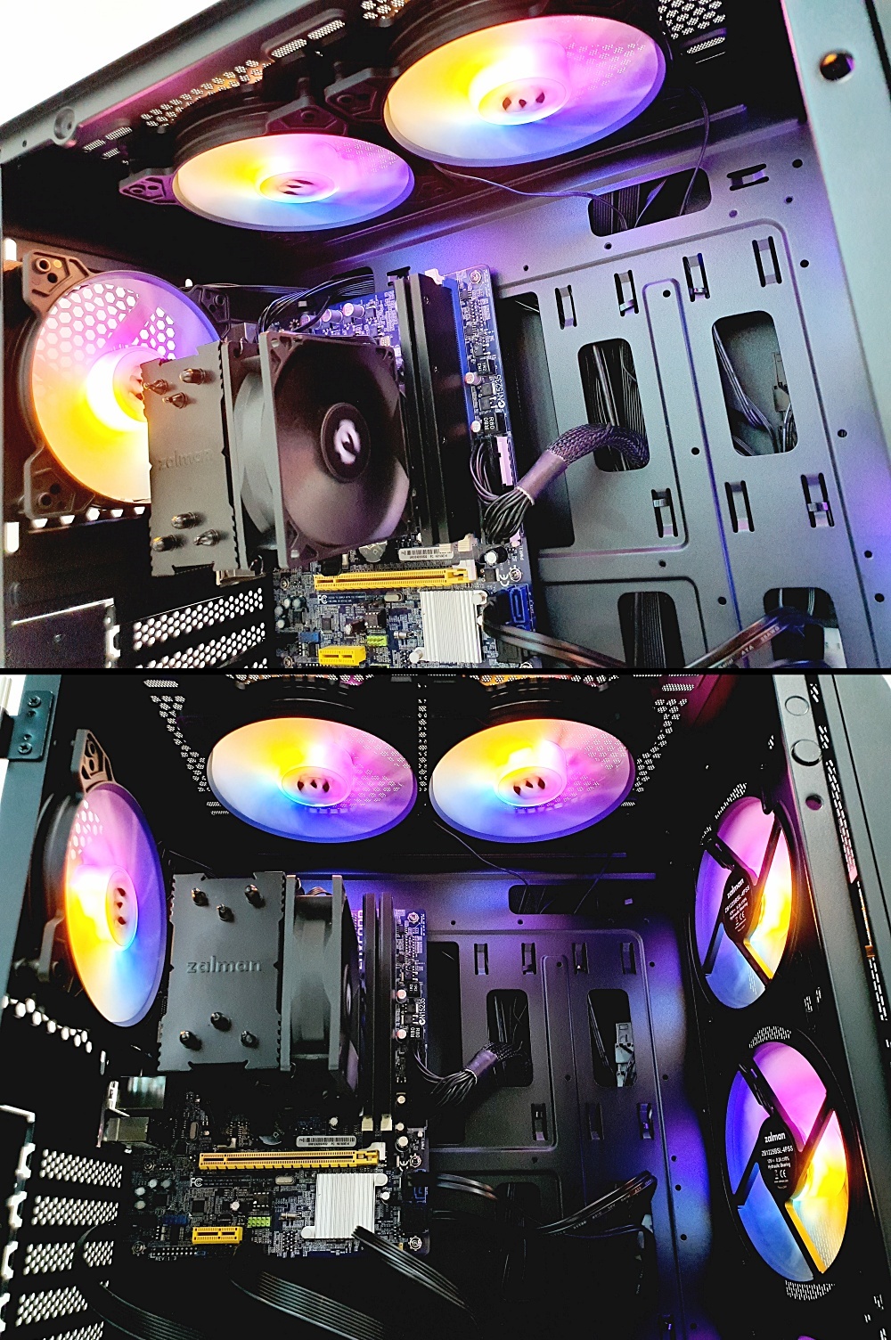 6개의 쿨링팬이 연출하는 레인보우 RGB 효과도 만족스러웠으며, 결론적으로 잘만 N7 PLUS PC케이스는 깔끔한 디자인과 준수한 조립 및 관리 편의성을 가진 PC케이스이며, 메인보드 핫존을 집중적으로 식힐 수 있는 측면 팬을 포함한 7개의 쿨링팬을 제공하는 가성비 충만한 PC케이스라고 할 수 있겠습니다.