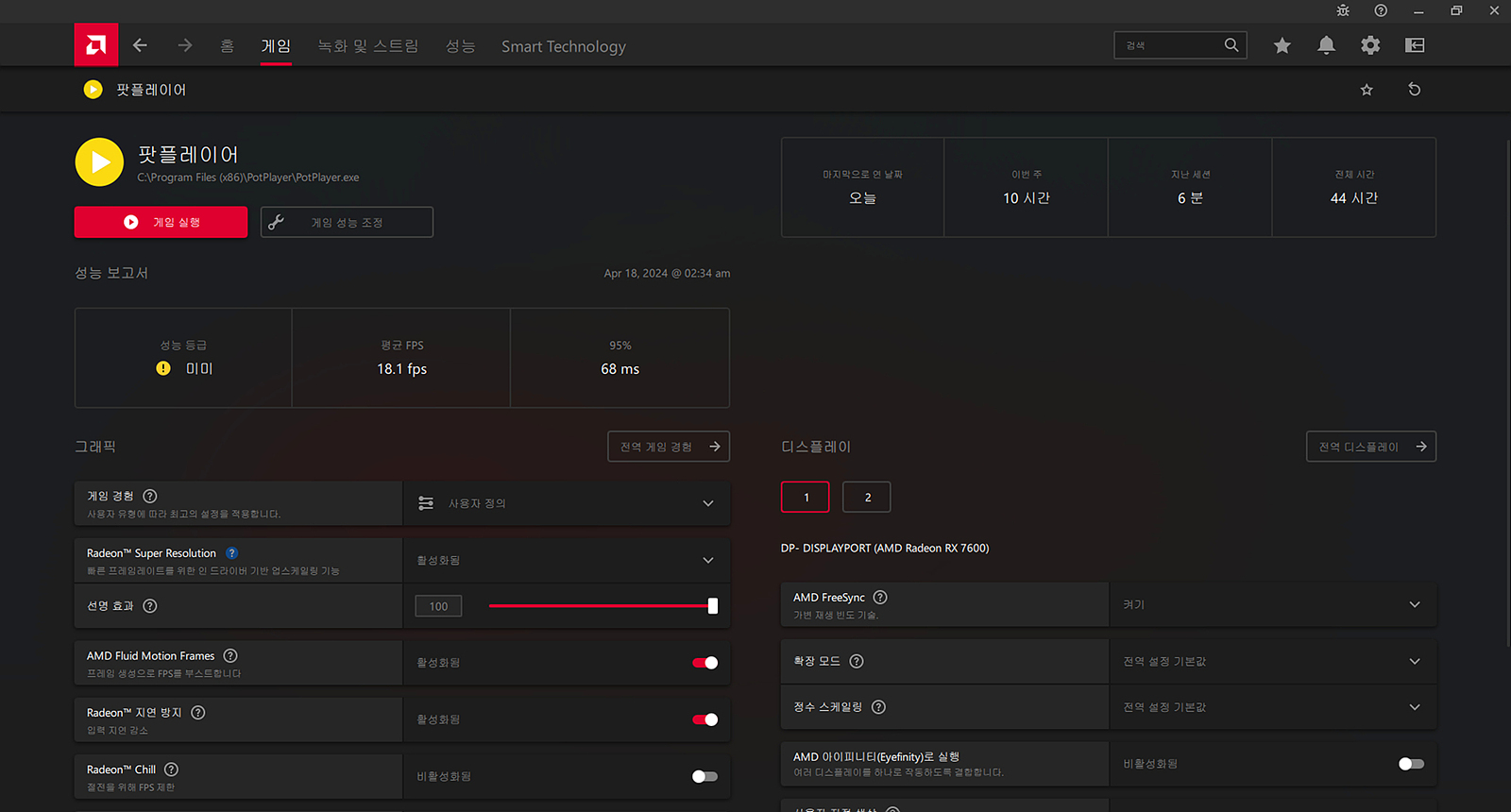 AMD 플루이드 모션 프레임 팟플레이어 설정