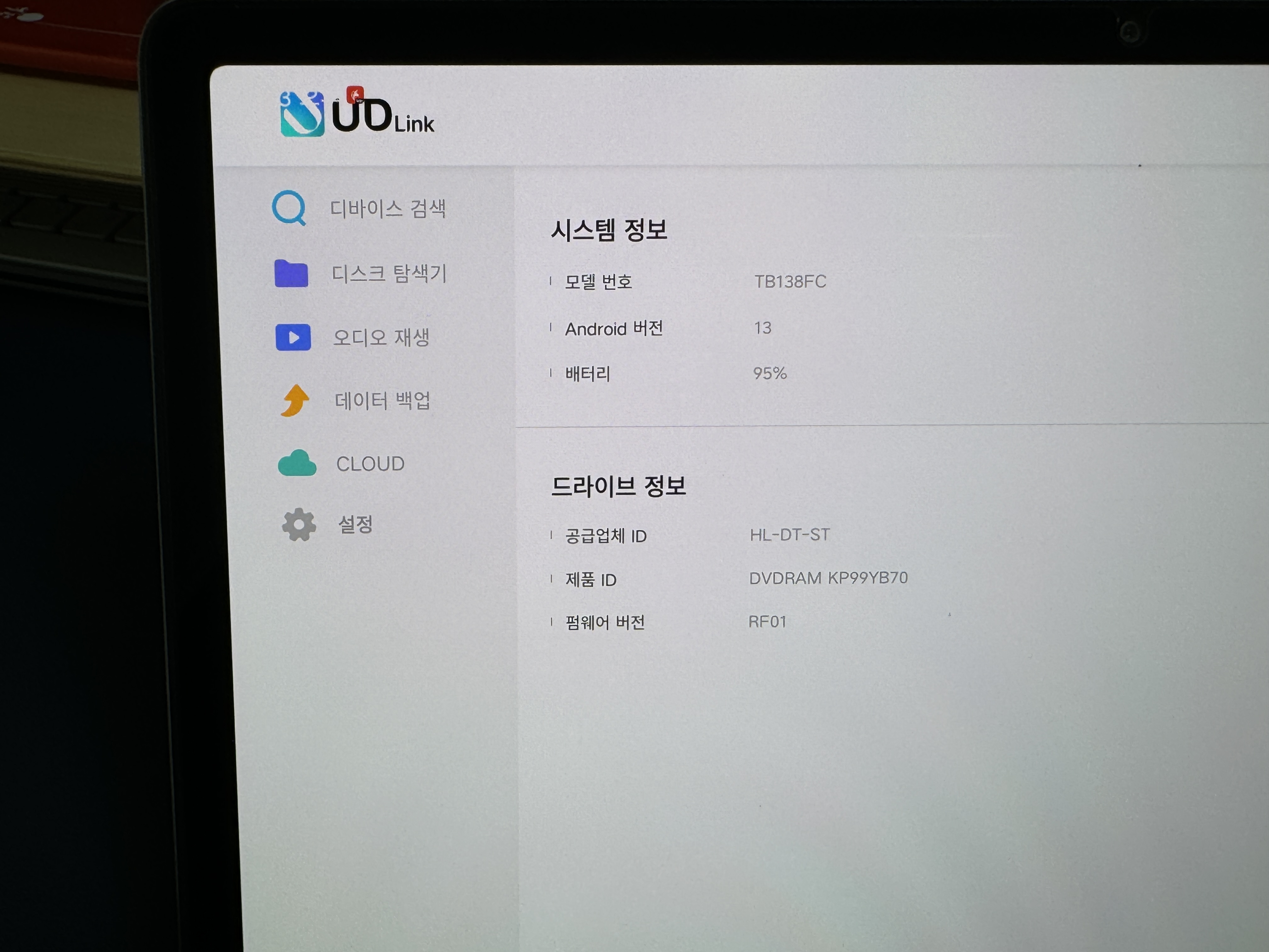 UD LINK 설정에서 확인해 보면 제품명이 DVD KP99YB70으로 정상적으로 인식된 것을 확인할 수 있습니다.