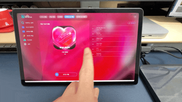 UD LINK를 설치하고 외장 ODD를 동봉된 USB - C 케이블을 이용하여 연결해 주면 따로 전원을 인가해 줄 필요 없이 탭에서 ODD가 작동할 수 있도록 전원까지 넣어주기 때문에 바로 사용할 수 있습니다.