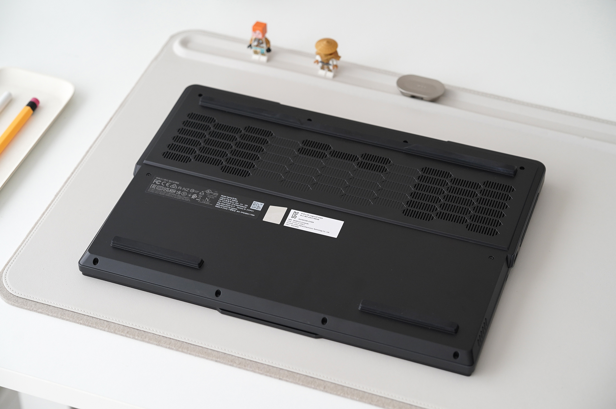 그리고 위 사진에서 볼 수 있는 것처럼 하판 방열구가 넓어졌기 때문에 열방출에 유리하도록 진화했다는 특징도 더해집니다. 정확히는 리전 Coldfront 5.0이라는 이름의 냉각화 기술로, 더 향상된 써멀 퍼포먼스와 0.1mm 3D 팬 블레이드를 통한 강력한 냉각 성능을 기대할 수 있으며, 대규모 흡기 및 배기 시스템과 함꼐 고효율 히트 파이프가 탑재되어 있다고 합니다.