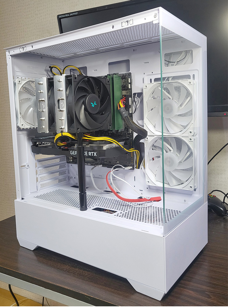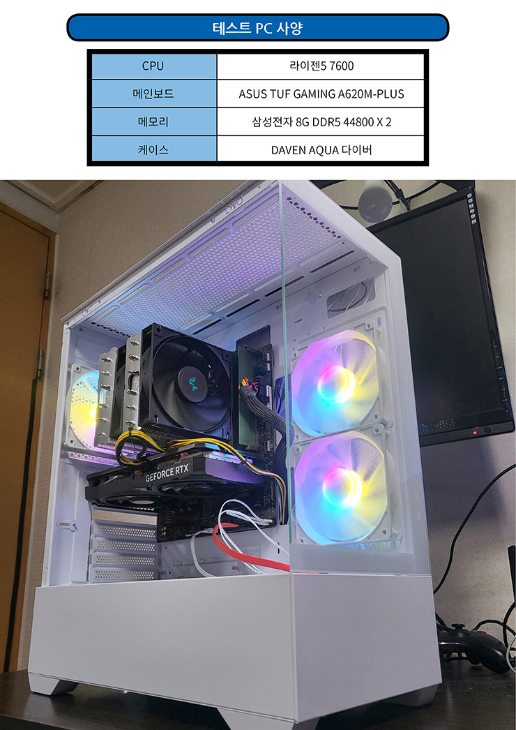 강력한 Hydro 베어링 구조의 듀얼 팬 등 상위 공랭 쿨러의 특징을 두루 갖추고 있는 데다