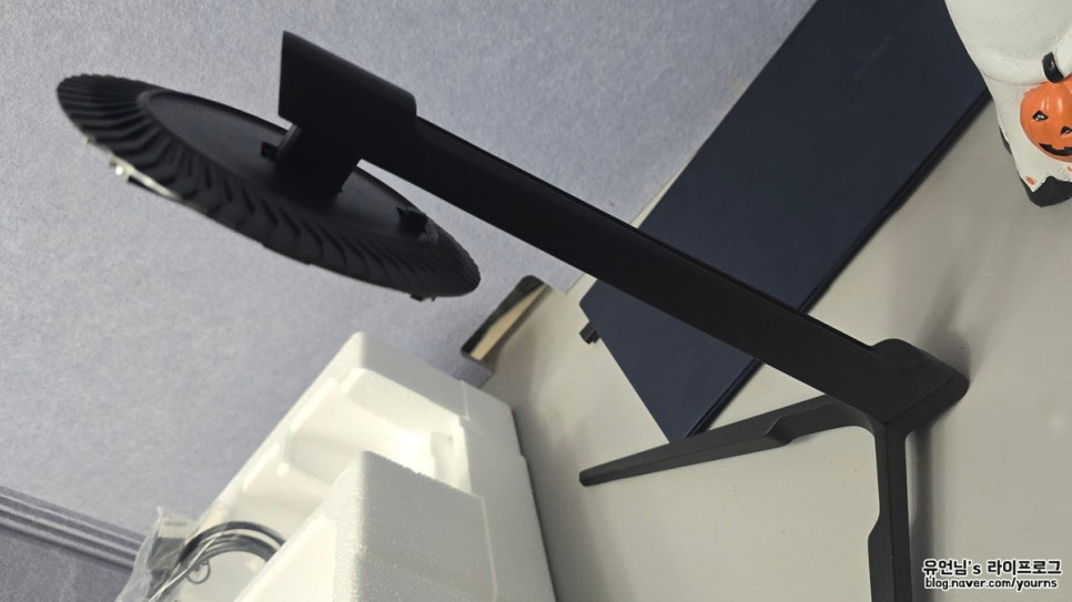 위와 같이 간단하게 모니터받침대를 조립해서 세우고 (나사 하나만 돌려끼우면 준비 완료!)