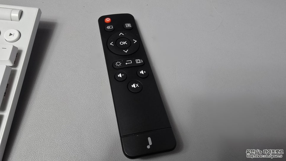 그보다 편리한 리모컨이 기본 동봉되어서 입력신호에 선택이라든지, 볼륨 조절 및 밝기 조절 등 설정을 편리하게 할 수 있었습니다.