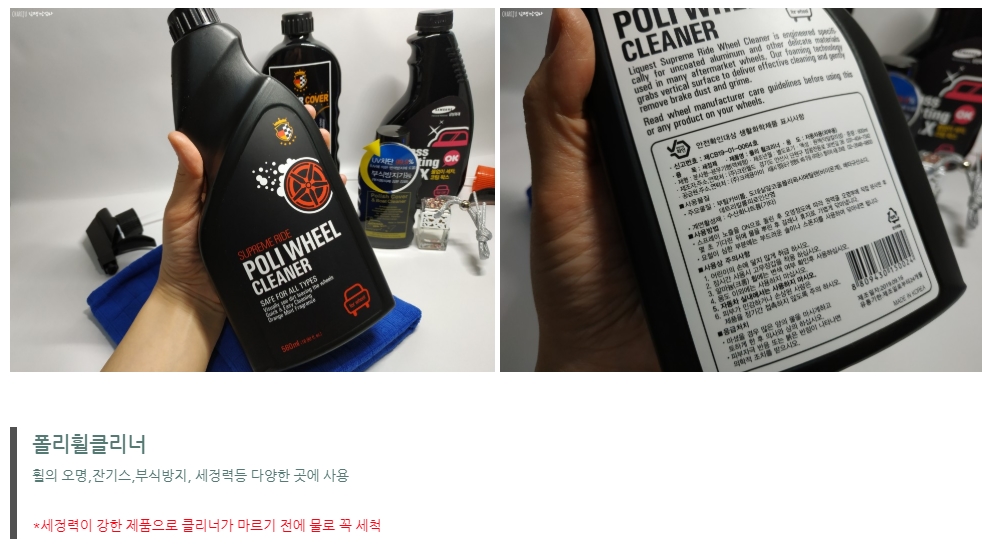 오염물제거 뿐 아니라 잔기스, 부식방지 등 세정력이 있어 자동차 휠 뿐 아니라~