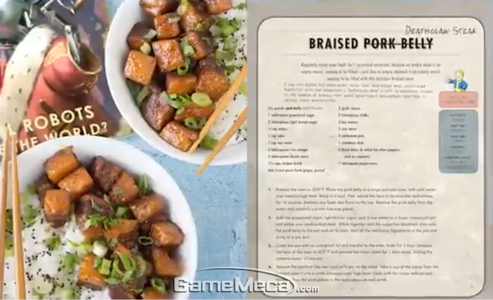 폴아웃에 나온 요리라면 '과연 먹을 수 있나'가 의문으로 남지만, 해외 출간본을 토대로 보면 책에 담긴 요리는 의외로 정상적이다. 예를 들어 데스클로우 스테이크는 데스클로우 대신에 삽겹살을 주 재료로 쓰는 식이다.