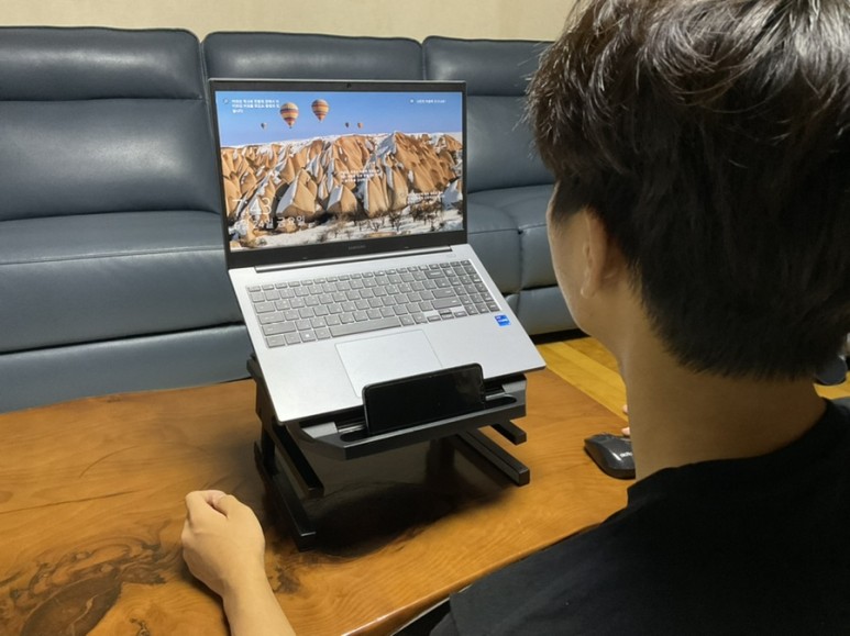 건강한 자세로 사용할 수 있어요. 숨은 기능도 많아서 ㅋㅋㅋ 활용도가 높은 웨이코스 노트북거치대