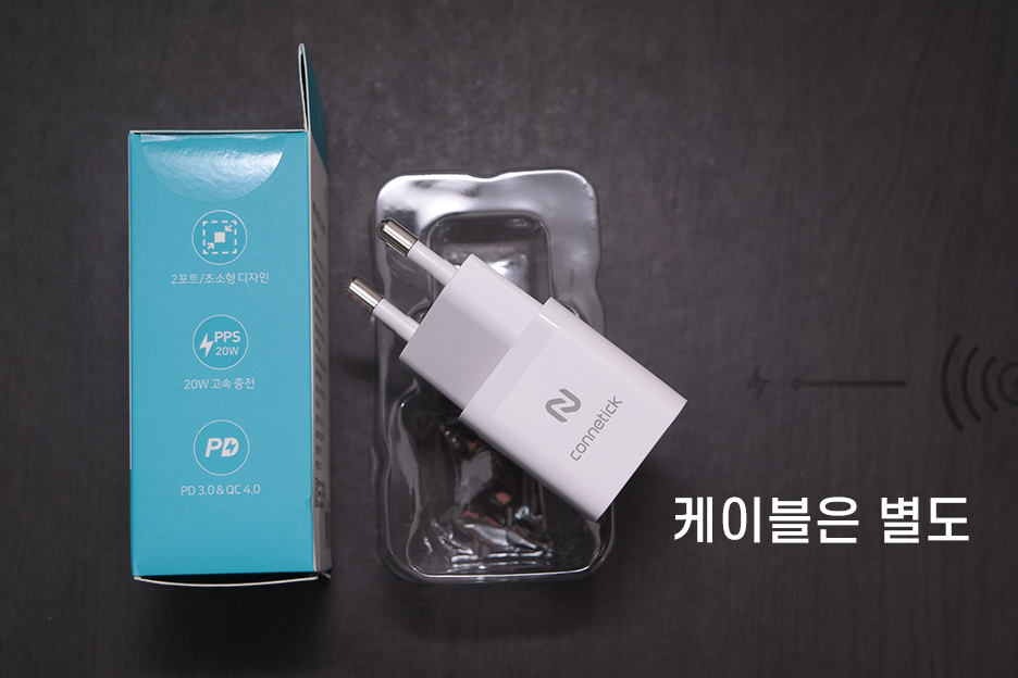 이번 리뷰하는 기기는 최대 20W로 충전할 수 있는 CNS파워 커네틱 고속충전기입니다.