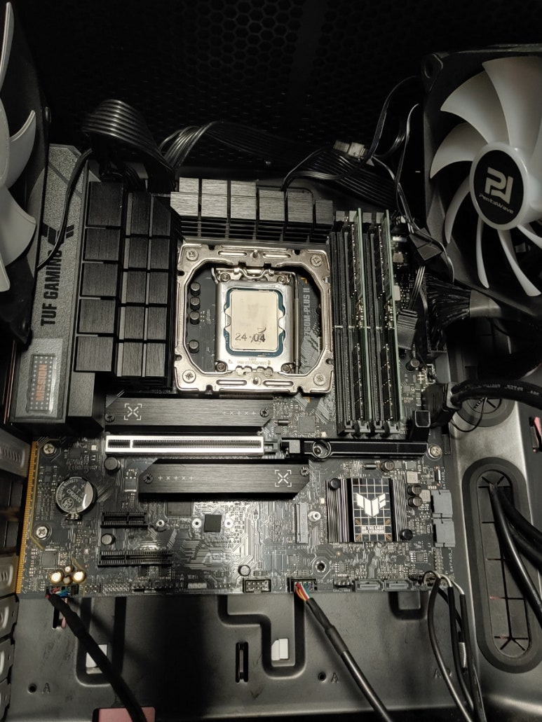 인텔 최신 소켓 1700 탑채로 인텔 14세대 CPU 사용이 가능한 ASUS TUF Gaming B760M-PLUS II 에요.