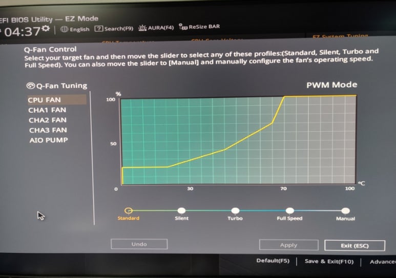CPU팬, 시스템팬, 워터펌프 팬 속도도 제어가능해요.