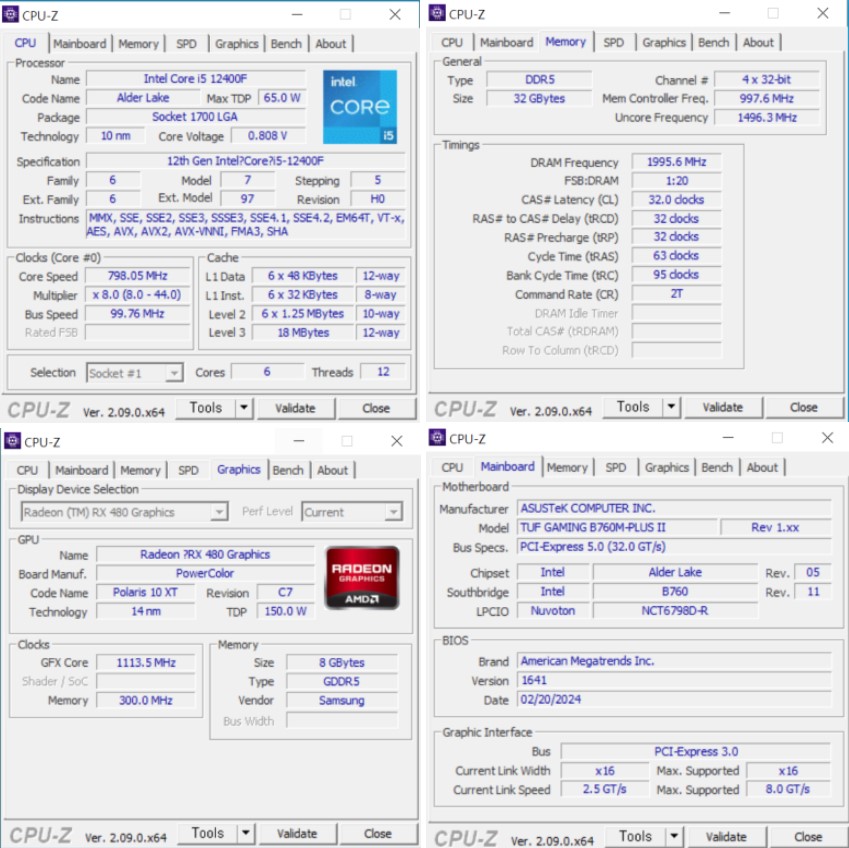 윈도우 진입후 CPU-Z로 장착된 제품 확인이 가능했어요.