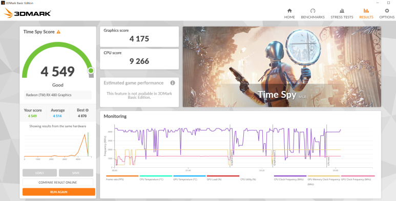 3840 x 2160 으로 타임스파이를 돌려보았어요.