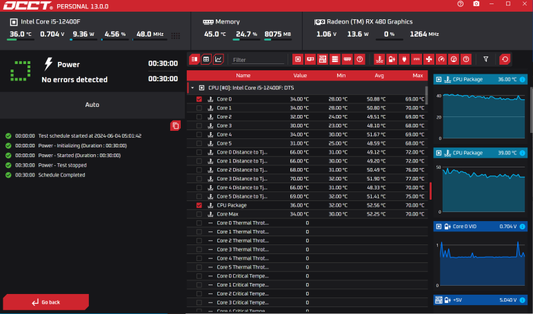 OCCT 30분도 안정적으로 통과하였네요.