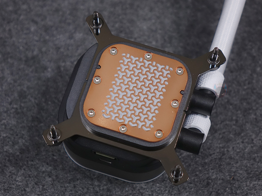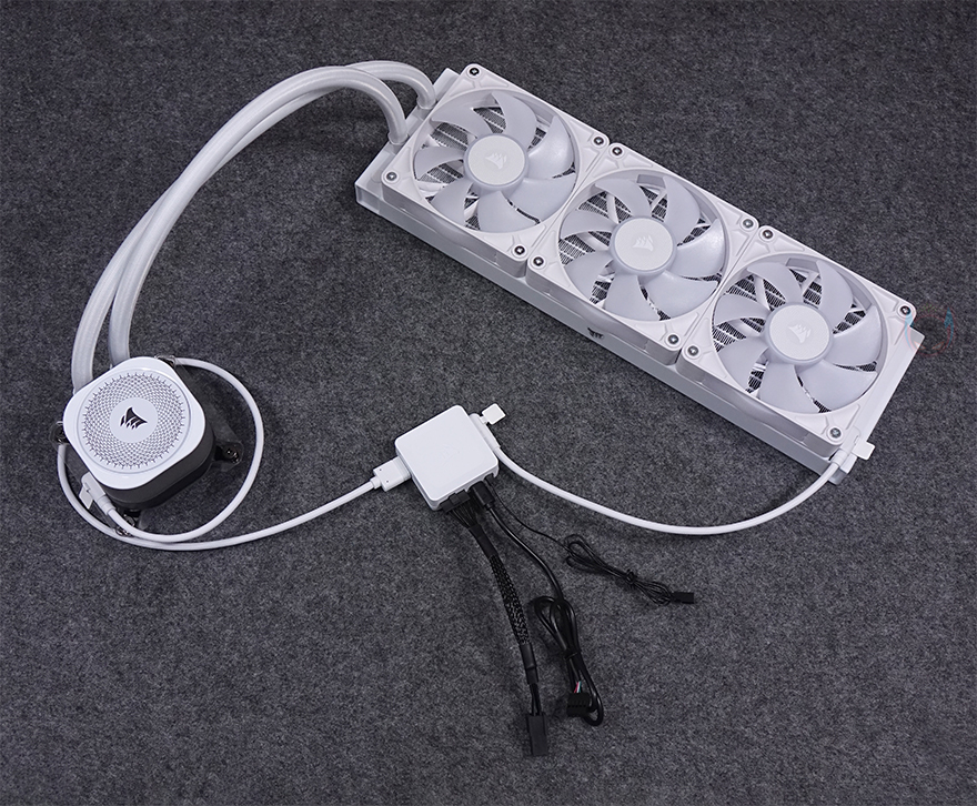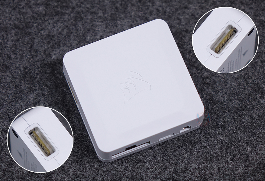 워터블록 역시 iCUE Link 허브와 연결할 수 있게 측면에 액티브 포트가 적용되어 있으며, 바로 위에 USB 타입C 포트는 LCD 스크린 캡을 사용했을 때 이용됩니다. 기본 캡 사용 시에는 제공되는 iCUE Link 케이블만 워터블록 측면에 연결시켜 주면 되죠. 그리고, 라디에이터 팬과 워터블록의 iCUE Link 케이블은 함께 제공되는 iCUE Link 허브에 연결해 주면 되는데, 허브 양쪽 측면에 액티브 포트가 각각 있으며, 허브 아래쪽에는 9핀 포트, 마이크로 USB 포트, 2핀 포트가 있습니다. 9핀 포트는 전원 포트로 제공되는 PCIe 케이블과 연결하면 되고, 마이크로 USB 포트는 iCUE 소프트웨어 연동 포트로 제공되는 마이크로 USB 2.0 케이블과 연결해 메인보드에 연결, 마지막 2핀 포트는 펌프 작동 포트로 역시 제공되는 2핀 케이블을 연결해 메인보드 펌프 커넥터에 연결해 주면 됩니다. 참고로, 허브 후면에는 마그네틱 방식으로 PC케이스 내부에 적절한 위치에 편하게 장착할 수 있습니다.