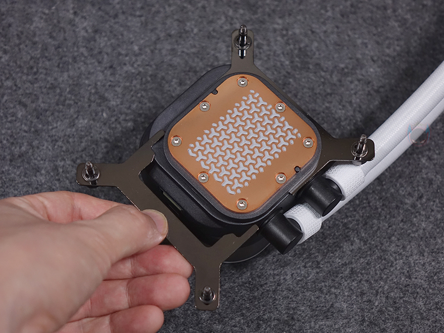 끝으로, CPU와 맞닿는 베이스부분에는 기본적으로 인텔용 마운팅 브래킷이 장착되어 있으며, 브래킷은 슬라이딩 방식으로 분리/장착할 수 있어서, AMD CPU를 사용할 때는 AMD용 브래킷으로 변경해야 합니다. 그리고, 베이스에는 기본 써멀컴파운드가 도포되어 있습니다.