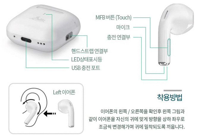 - 재생 / 일시정지 : 짧게 1번 누름(왼쪽, 오른쪽 상관없음)