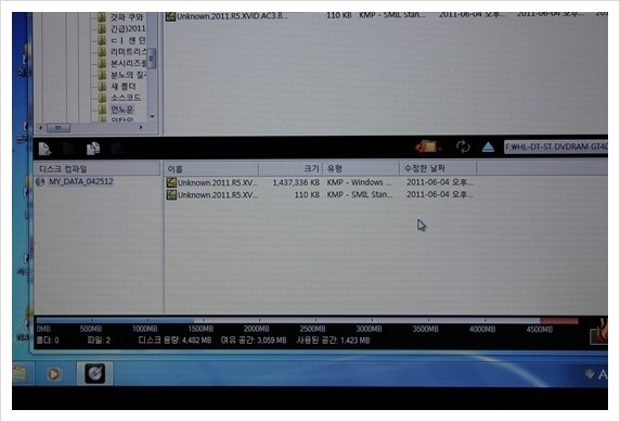 기존 노트북 A530 ODD에 디스크를 삽입하였더니..