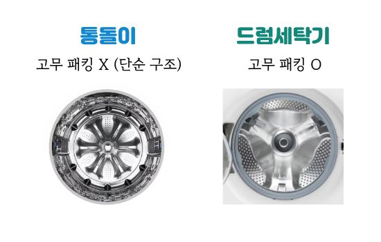 반면, 드럼세탁기는 낙차 공간이 필요해 부피가 큰 세탁물은 효율이 떨어질 수 있습니다.