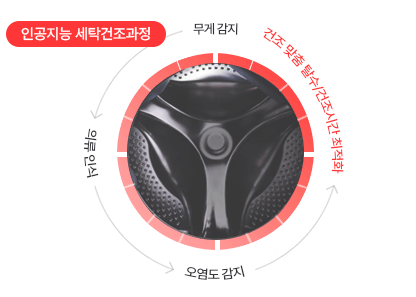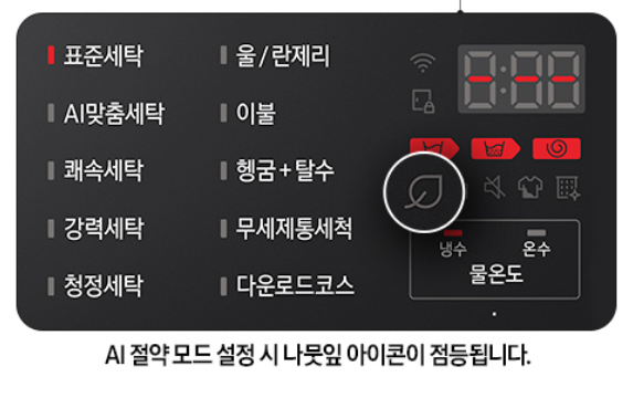 - AI 세탁 기능이 세탁물의 양과 오염도를 자동 감지해 최적 코스로 세탁
