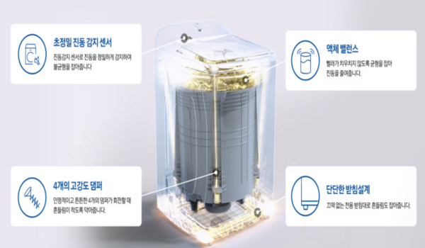- AI 진동 소음 저감 시스템이 바닥 상태를 인식해 세탁 중 진동과 소음을 최소화