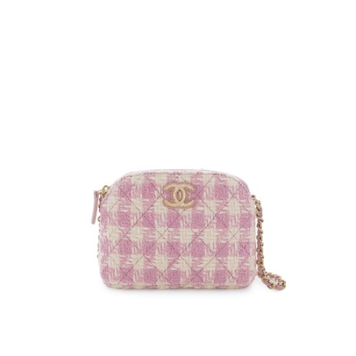 하프문 트위드 미니백 에크루/핑크 샴페인골드_5ET0716