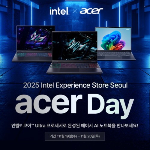 글로벌 PC 제조사 에이서(Acer)가 오는 11월 19일부터 20일까지 서울 강남 OPUS 407에서 열리는 ‘인텔 익스피리언스 스토어 서울(Intel Experience Store Seoul) 에이서 데이’를 통해 인텔 코어 Ultra 프로세서를 탑재한 최신 AI 기반 노트북 라인업 체험존을 운영한다. 이번 행사는 인텔이 뉴욕, 런던, 뮌헨, 파리, 서울 등 전 세계 5개 도시에서 동시에 진행하는 글로벌 팝업 쇼케이스의 일환으로, 아시아에서는 서울이 유일한 개최지다. 관람객들은 최신 인텔 기반 AI PC 기능과 혁신적인 사용자 경험을 직접 체험할 수 있으며, 글로벌 파트너사들도 함께 참여해 풍성한 볼거리를 제공한다.