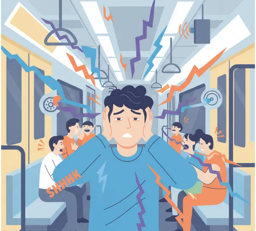 비행기 엔진음, 지하철 소음, 카페 웅성거림과 같은 지속적이고 반복적인 소음 (저주파)