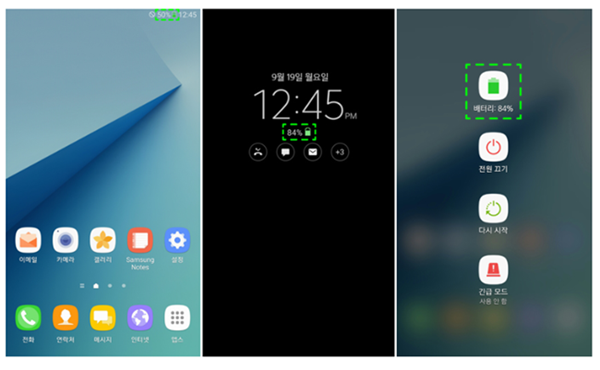 -. 잠금 화면시 배터리 이미지가 '녹색' 일 경우 개선된 갤럭시노트7