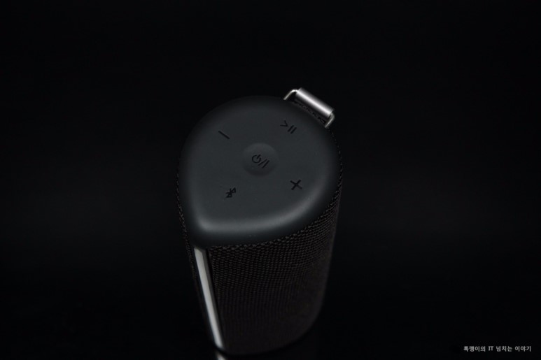 컨트롤러 부분은 위쪽에 존재하고 있습니다. 가운데 전원 버튼과 함께 볼륨 버튼, 블루투스 페어링 버튼이 있으며, 재생 및 일시정지 버튼과 함께 블루투스 페어링 버튼이 있습니다.