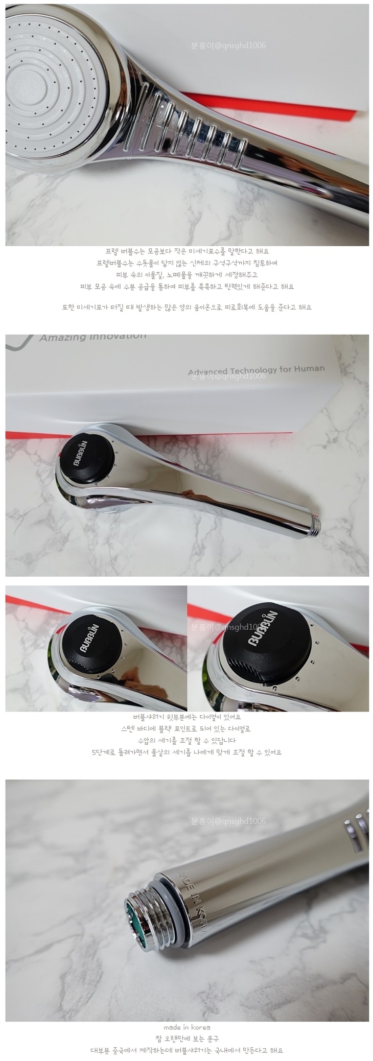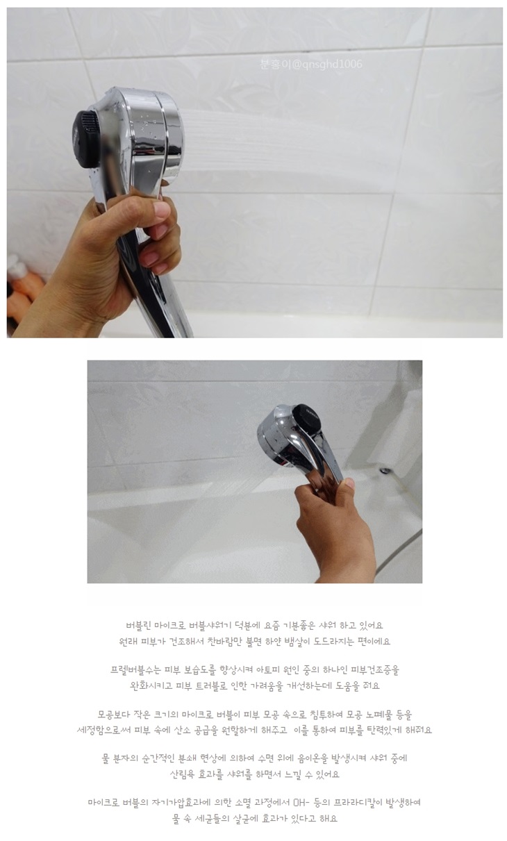 오래된 우리집 샤워기헤드를 교체할 시기가 왔더라구요 안방 샤워기는 불살이 쎈데 바깥쪽 샤워기는 힘이 없어서 이참에 버블버블스러운 샤워기헤드를 바꾸기로 했어요