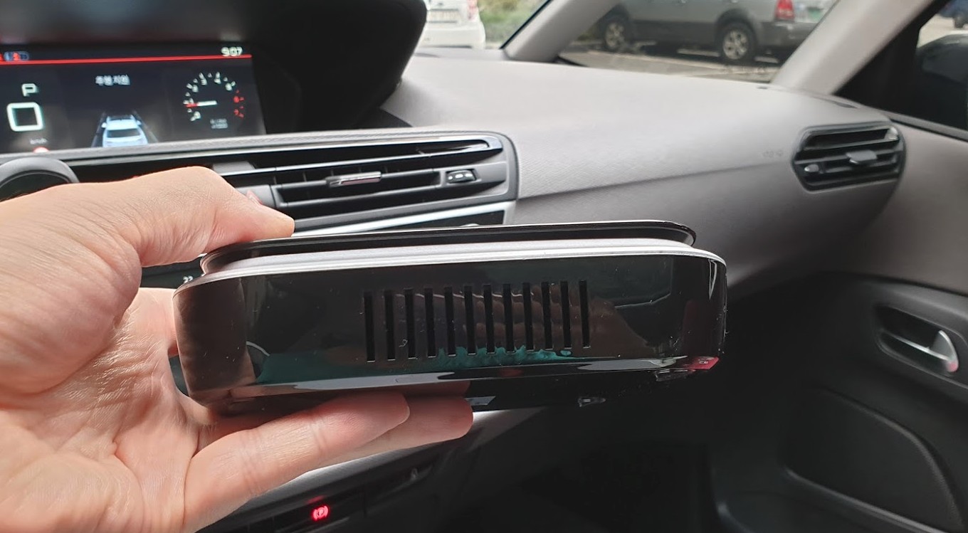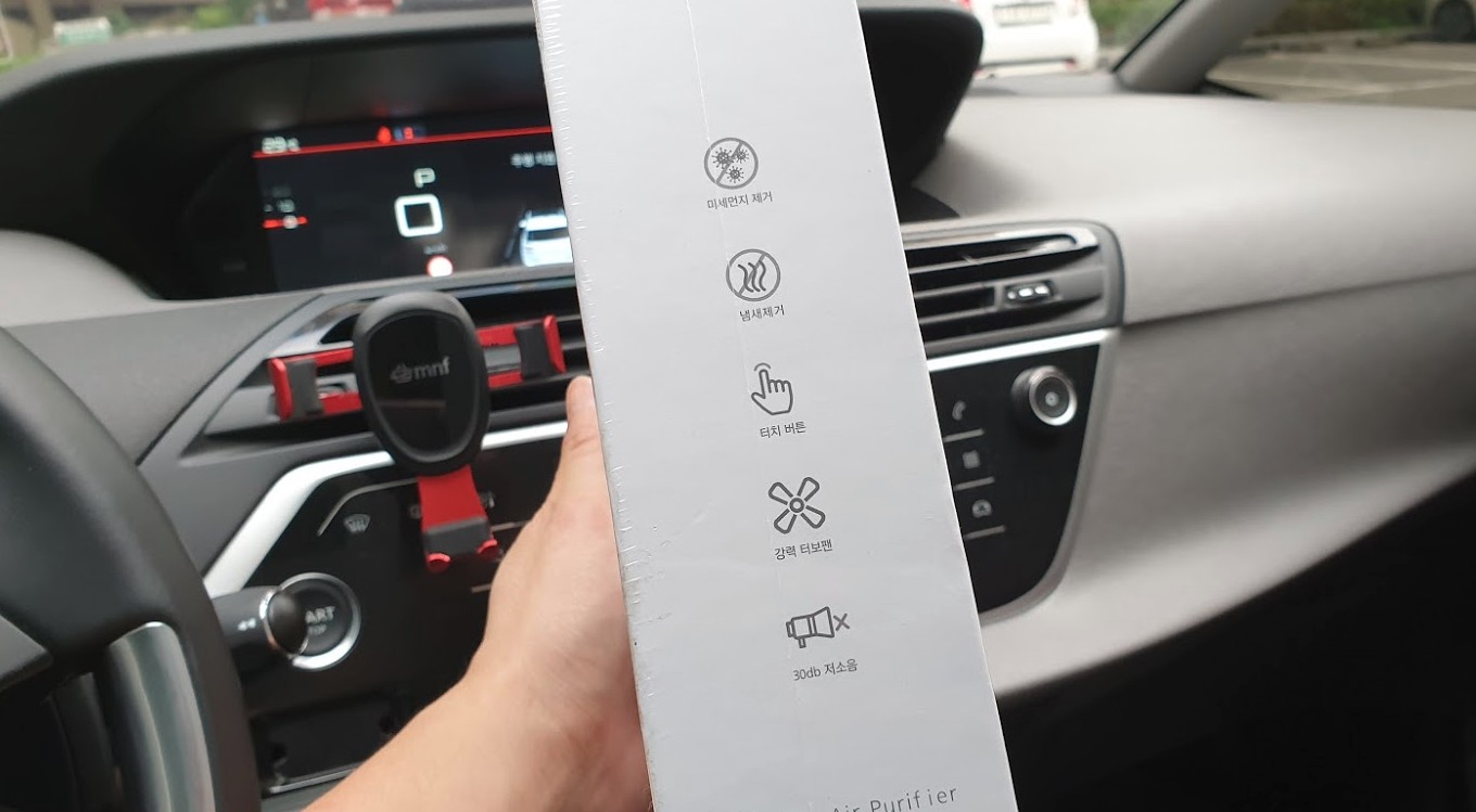 저는 아래사진처럼 보조석 대시보드위쪽에 설치를 했습니다. 차에서제일 평평한 곳이기도 하고 디자인이 괜찮아서 올려놓으니 좋더라구요. 케이블은 다시한번 정리를 해야 할거 같기는 한데 일단은 이렇게 사용중입니다. 계속 키고 있으니 확실히 차에 먼지가 많이 줄어 드는거 같아요. 필터는 중간중간 청소를 해주면 오래 사용할수 있을거 같습니다.