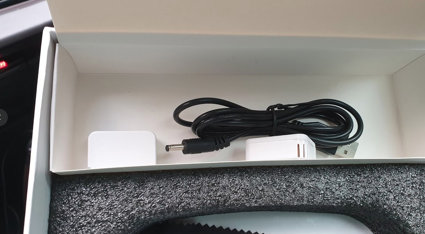 상단에 있는 악세사리 박스에는 전원케이블과 아로마박스가 들어 있습니다.저 아로마 박스에 아로마오일등을 넣은후에 공기청정기에 장착해서 사용을 하는건데요. 전원 케이블은 차량용 시거잭 타입이 아니라 USB 로 되어 있습니다. USB 로 되어 있기 때문에 꼭 차량이 아니더라도 보조배터리를 이용해서 휴대용으로 사용도 가능할거 같네요.