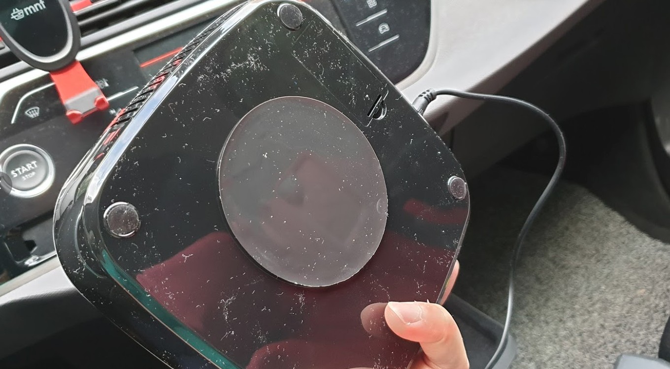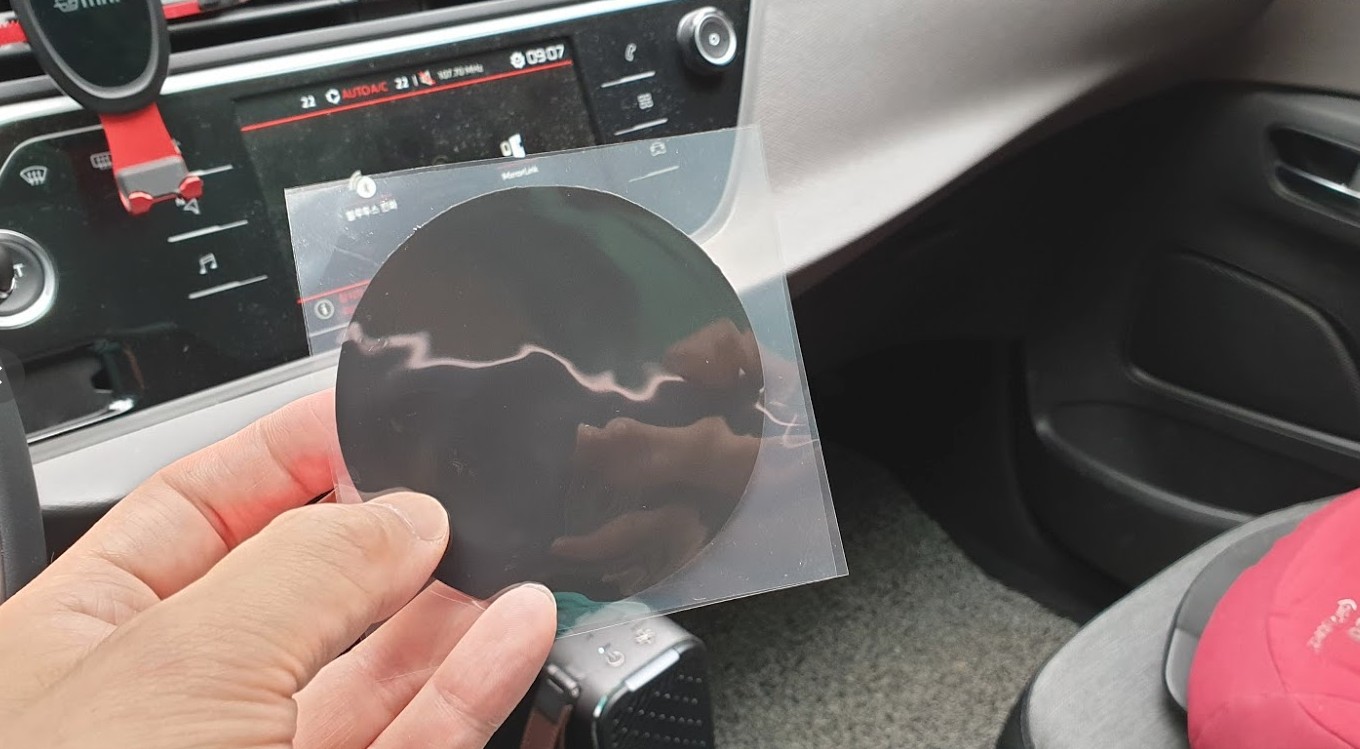 본체에 붙이면 아래처럼 되는데요. 이게 양면테이프 같이 강력한 접착력이 있는건 아닙니다. 약간 점성(?) 같은게 있는 미끄럼방지 패드라고 생각 하시면 되고, 차량이나 본체에 쉽게 붙였다가 뗄수가 있습니다. 필요할때 위치를 옮기거나 하더라도 그냥 때서 옮기면 됩니다.