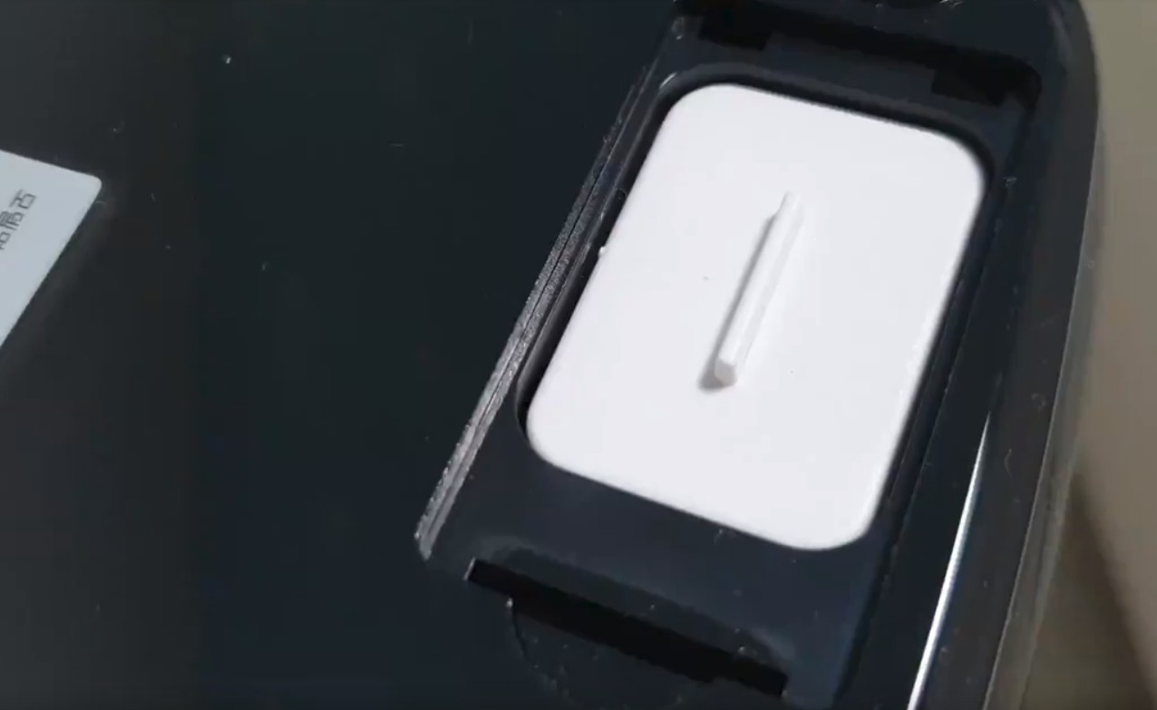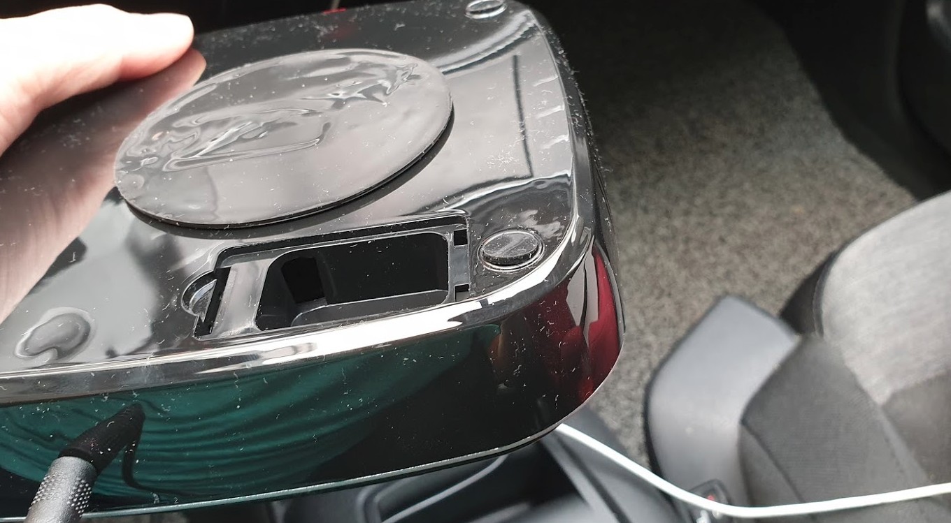 그리고 본체 바닥에 아래처럼 뚜껑이 있는 부분을 찾을수가 있는데요. 이부분을 열면 아래처럼 홈이 있습니다. 이곳에 위에서 보셨던 아로마박스에 아로마 오일을 넣은후에 장착 하도록 되어 있습니다.